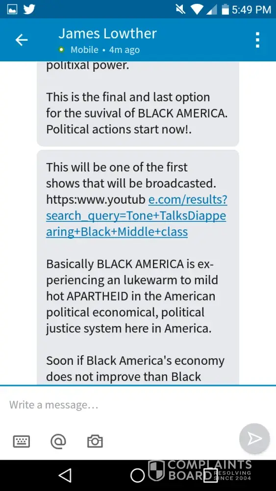 If you could simply answer those six questions, I will consider removing my complaint from this website. If, however, you fail to give solid, factual explanations, then my complaint will remain. There are, however, other questions that I would also like to ask, but of which I will not stress the immediate importance of. First of all, could you please explain how the information contained within my complaint is "racist" and "discriminating"? Those are some powerful terms to throw around in an attempt to paint me as the bad guy–which you sure do try to do a lot–but they really have no facts to support them.