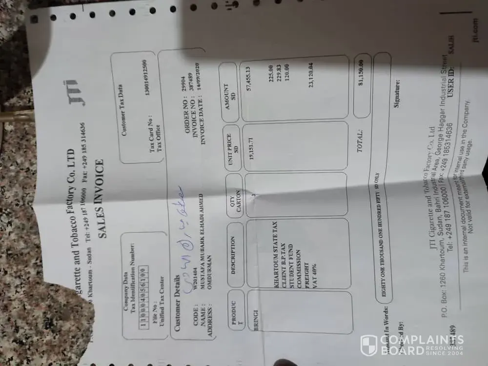 I am the only one on this page whose problem has not been resolved. I do not know what to do or who to contact. I hope that the management of the Japanese Tobacco Company will stand with me in my problem in the Sudan branch. Thank you very much. Just solve this problem and give me my share of Japanese tobacco company products in Sudan. I sent many messages to the company regarding distribution to me in Sudan, but I did not know or find a solution. I am an agent for the company and I have a tax number and a code that I do not know. It has been three years and no one has cared about my problem.