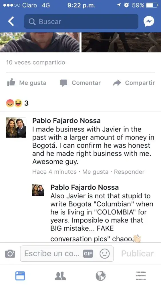 I am Javier Talavera. Last week we reported an scammer on scamologist and blacklist of scammers in gem industry. After we report him on jun 22 he create this story with a fake account with my name on it to create a supposed conversation between me and buyer. I ask to the team of complaintsboard.com to delete this post. No solid evidences, no receipt show of wester union. This is totaly fake.