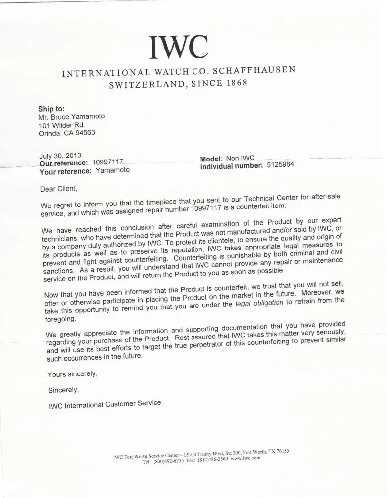 Read full complaintWatchesyoga.com - Replica watch - refund