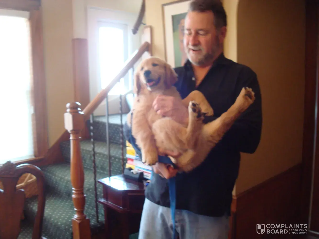 golden retriever from him. we purchased her on Monday and by Tuesday she was having diaheria and not eating, she got worse, by Friday she was not eating or drinking at all. We kept in contact with him and he said she probably ate a plant that made her sick. I fed her rice and chicken and pedilite in a syringe per his instructions. We had 2 other golden retrievers and never had any problems. After four years we gave in to our daughter and bought her a dog because she had no animals stories like her brother and sister, her story