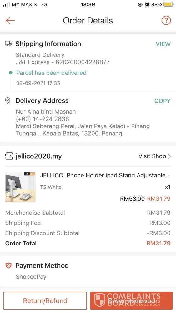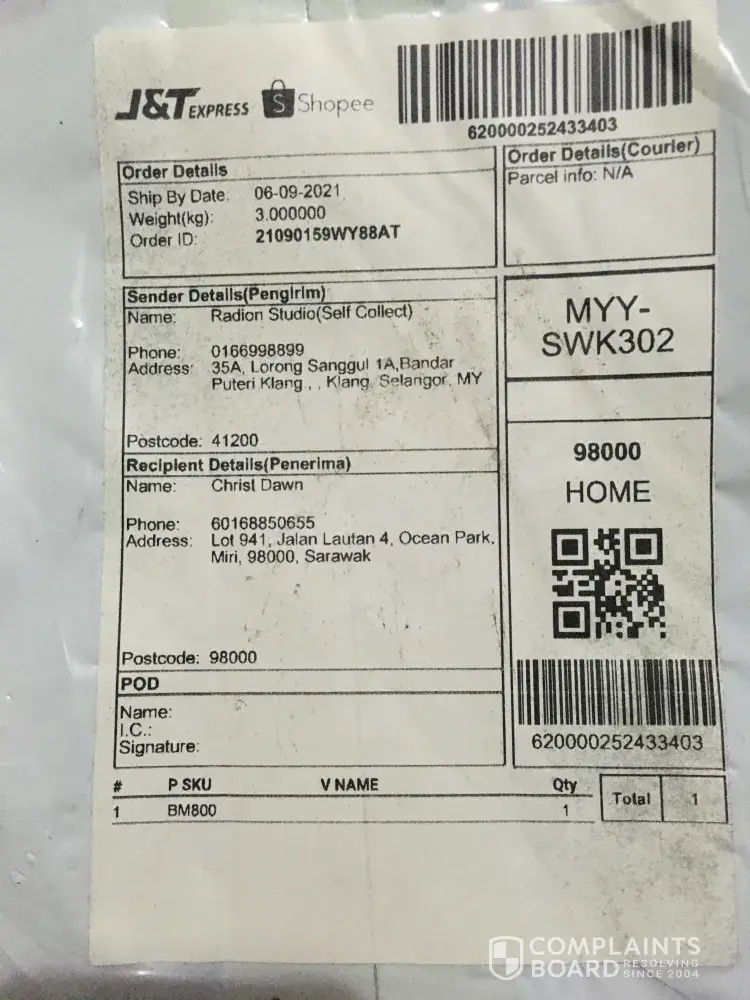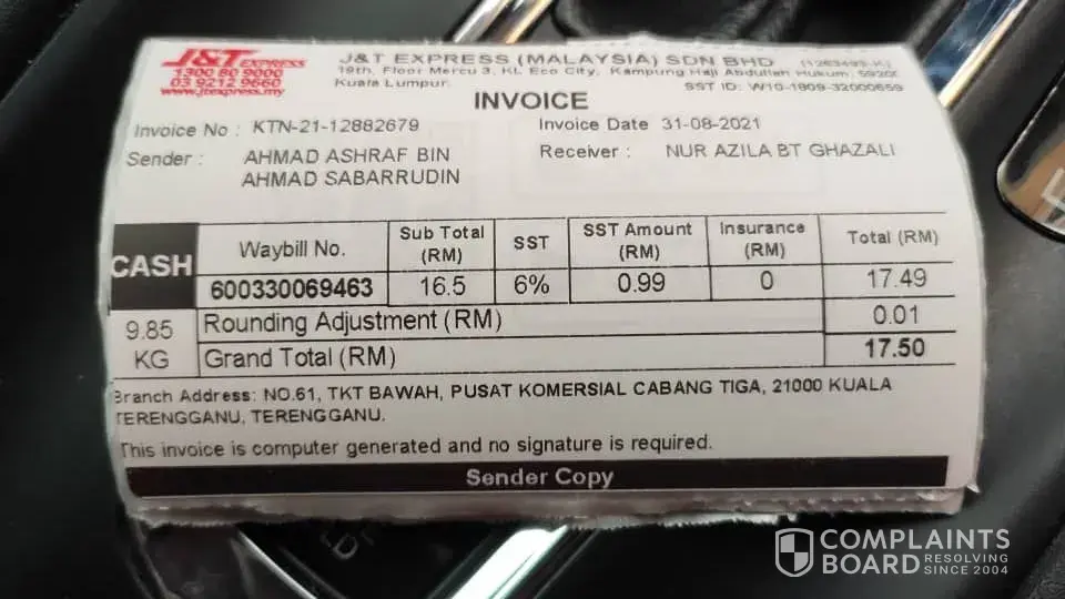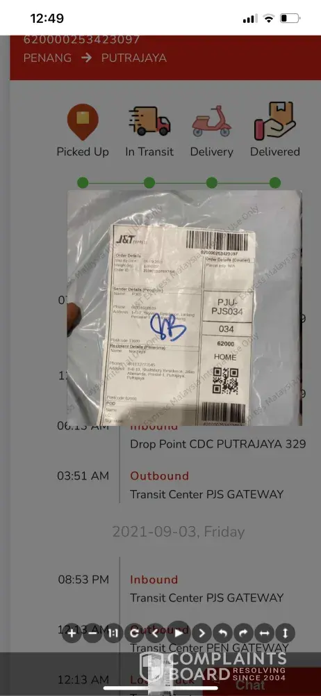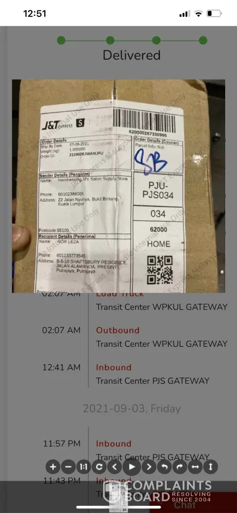 Untuk makluman saya guna alamat tempat kerja (MARDI) tetapi gambar bukti barang saya telah dihantar menunjukkan lokasi rumah orang bukannya tempat kerja saya. Gambar yg di ambil juga tidak menunjukkan alamat & nama saya. Saya tidak dapat barang saya & juga tidak dapat apa-apa makluman barang akan dihantar. Saya cuma dapat notification menyatakan barang saya telah dihantar. Mohon pihak J&T siasat staf yang terlibat dalam proses penghantaran tersebut.