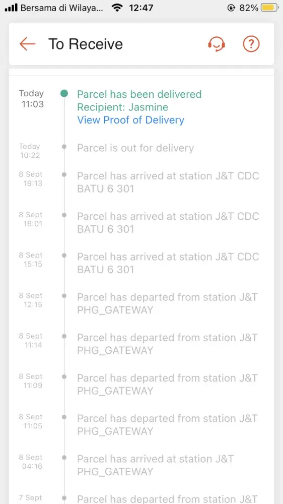 Parcel tak sampai, status in system J&t delivered