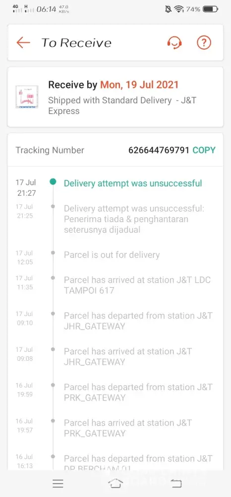 J&T Express My parcel late delivery till today 18 Jul