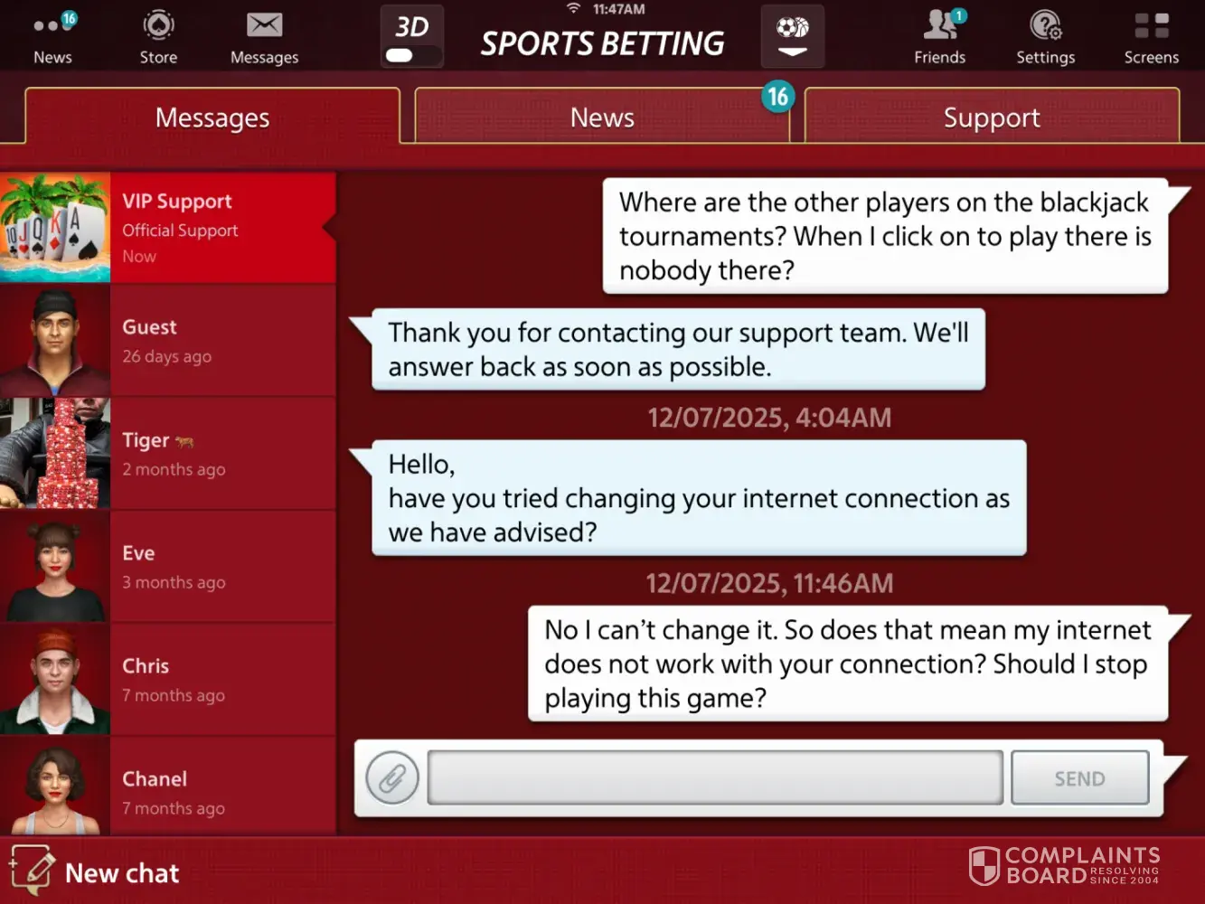 I’ve been playing KAMA games since 2019. I’ve noticed bad connection to the servers. I am in tier 7 and suppose to get VIP support. Most of the time when I contact the support team I get an automated message saying thank you for contacting the support team. Today and other times I get no message. I notice that because I had over 3billion chips and my...