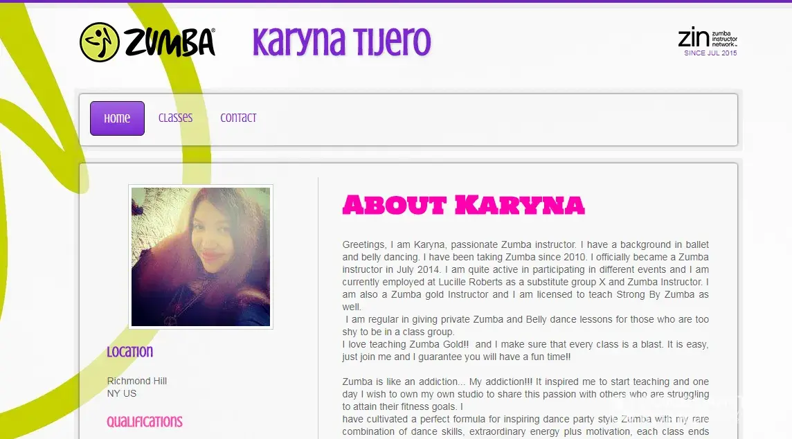 What kind of complain is this one? I have taken Zumba Gold classes with Miss Karyna and you should be ashamed of yourself for posting this pile of rubbish. She lives in New York and she teaches Belly Dancing and Zumba Gold in New York. If you are going to lie about someone at least have some backup information. You are nothing but a liar and a hater.