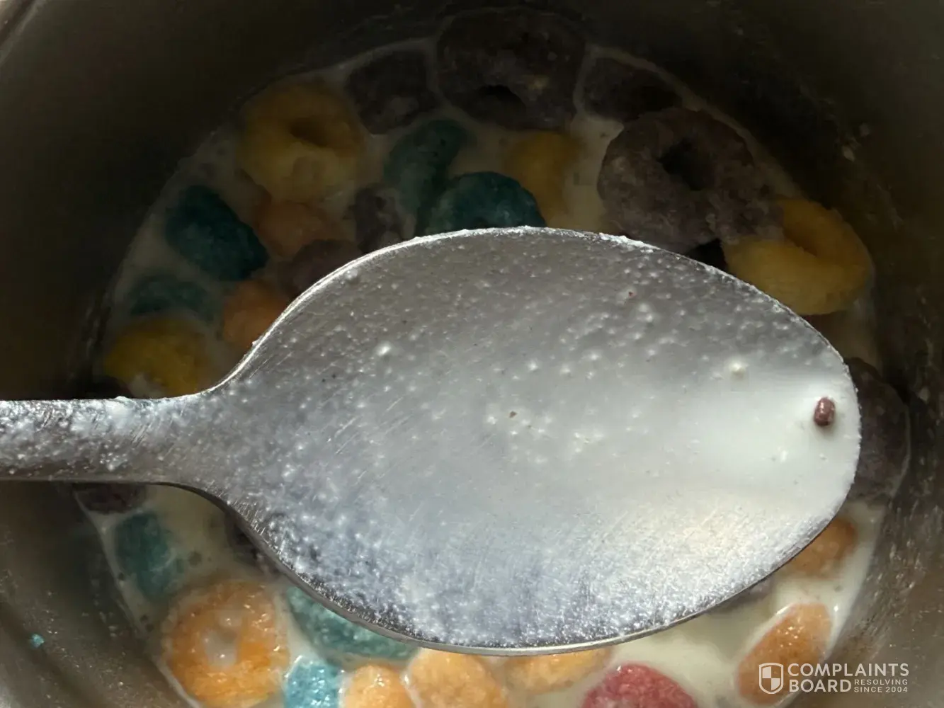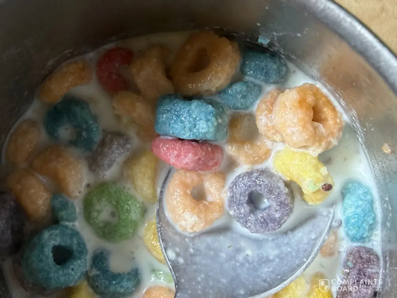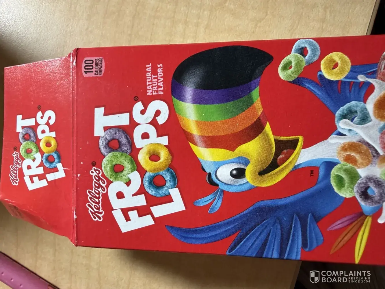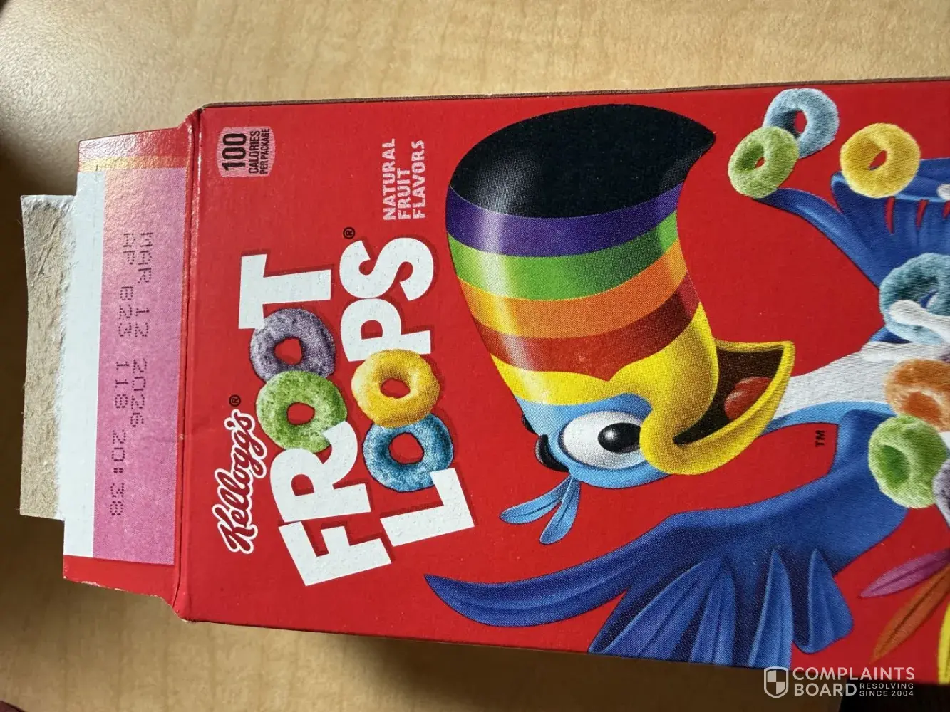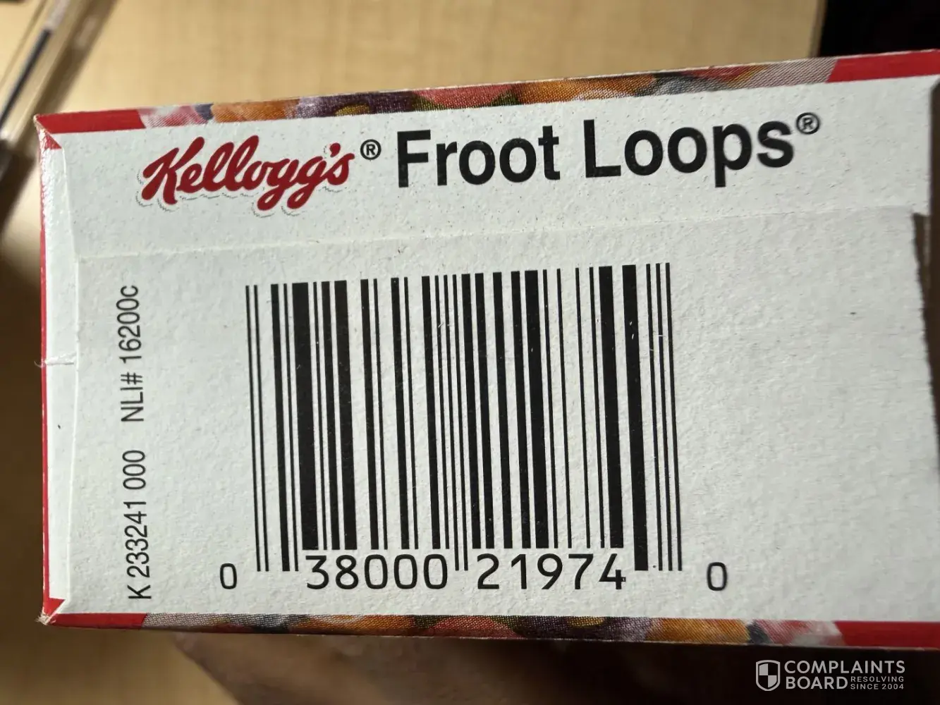 I bought a fruit loops from one of my local supermarkets last week. It contained both dead and live burgundy bugs. I was eating the cereal when I found the first one. Then I saw multiple after that. I removed two and inspected them. One started to move. This package is to expire Mar 12 2026. The batch code is AP B23 118 20:38. Attached is my evidence for my complaint.