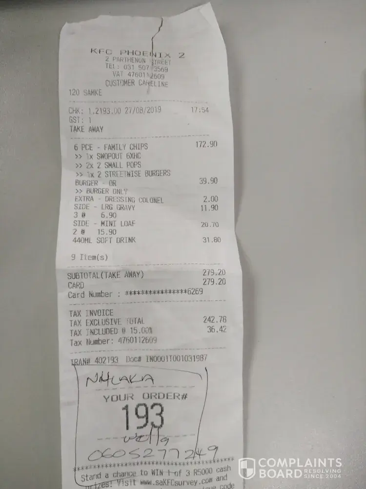 I visited the above store yesterday and purchased a Rounder with extra sauce as well as a 6 piece family meal. First issue was they did not even have 2lt cool drinks in stock. Secondly when I received my order the Packer did not even confirm my order. I asked if she is not going to confirm, her response was "I packed it myself so it's right" I got to my table and proceeded to Unpack my order. I take out the burger and why do you know, it's a Zinger so I go to the counter and the Packer ignores me so the cashier helps me to get the correct burger, so I get back to the table and open the box with the chicken and what do you know, I asked for the pieces to be swopped for hot and crsipy and it was the normal chicken so yet another trip to the counter where I was ignored yet again by the Packer and assisted by someone else. The manager did nothing. So if I got the wrong order definitely another customer got an incorrect order. KFC is not doing me a favor, I am paying for a meal which I expect to be fresh and correct. What if I went all the way home and then found the order to be I correct. KFC service is pathetic at that store.
