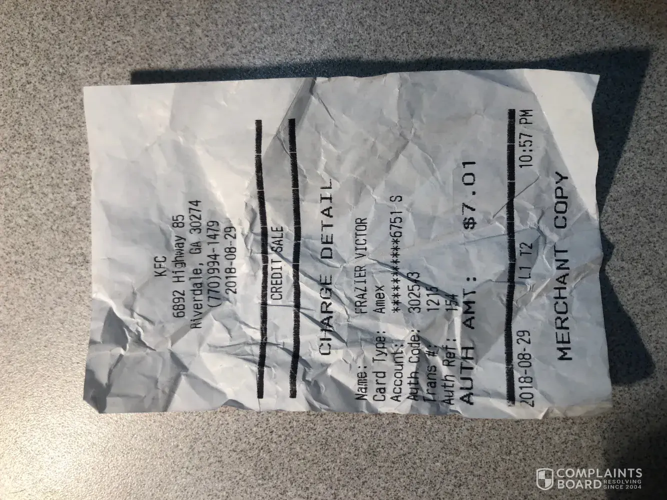 On Sunday, August 26, 2018, I went to the KFC #H730049, located at 3819 Walnut St., Harrisburg, PA. My Ticket #4239 and the time was 3:46 PM. The cashier name on my receipt is Will.