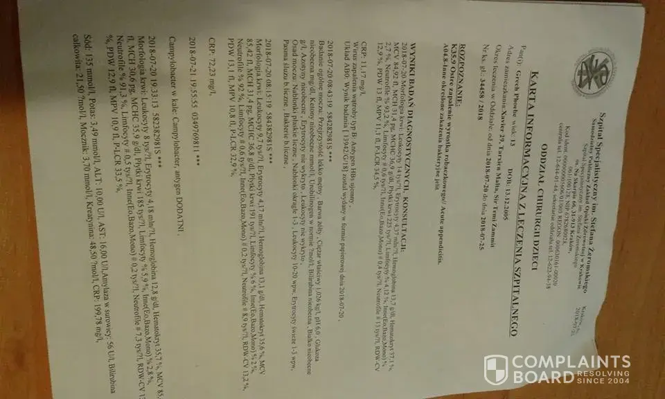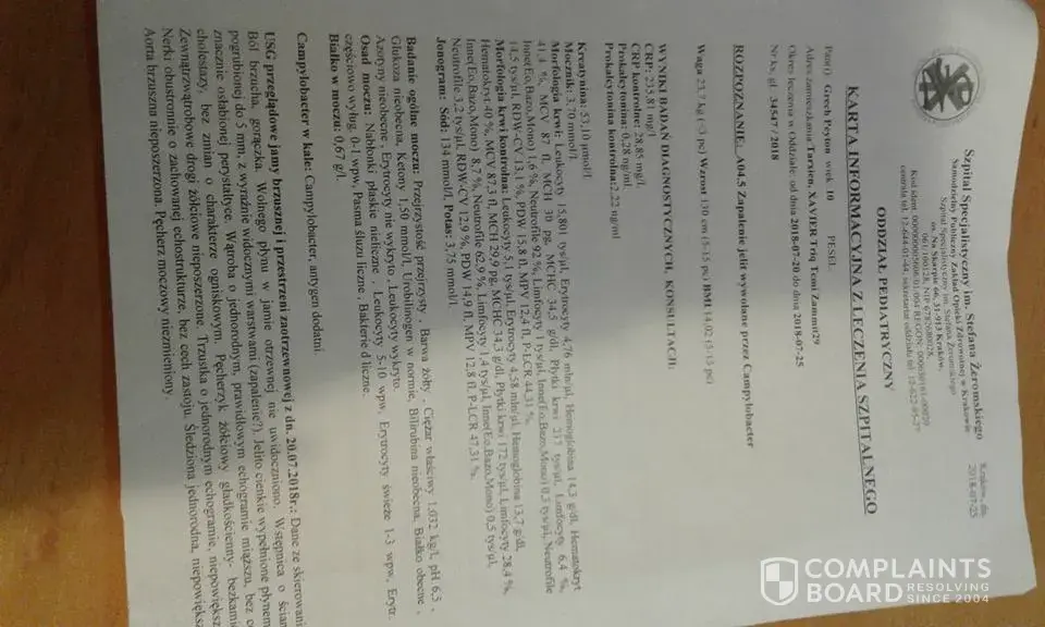 3 days after on thursday 19th july late evening, both of them was admitted to zeromski hospital in krakow with high fever and abdomen pain. Several tests were taken and the results was that they had campylobacter jejuni... Food poison caused from chicken. My eldest daughter was weaker the her sister because she had ate all her 3 pcs of chicken and she needed to be operated as well cause the bacteria has inflammated her appendix :- (we lost our flight on saturday 21st as the girls were till in hospital for treatment and very weak. My husband and I ended up sleeping at hospital with the luggages as were were then without accomodation (homeless) as our apartment was booked till saturday 21st. The girls were out of hospital on wednesday 25th july afternoon and fortunately we found a hotel until our flight back to malta. It wasn't east to find an acomodation and a flight back as it was peak season. I have all the documents from hospital and even the sanity report. Your chicken has riuned our 1st family holiday as it was my daughters first time abroad and they were really looking forward. We ended up staying 2weeks in krakow instead of 1week and most of it we were in hospital or recovering in the hotel. We flew back to malta last saturday 28th july and the girls are still weak to ejoy their summer holidays or even swim this summer. My eldest daughter will have a big mark on her tummy for the rest of her life. I would like a compensation for all this cause it's not fair. Kfc should be responsible for his food espacially when it comes from chicken.in krakow there are so many kfc's and I really hope no other patients were sick like my daughters. It's really scary cause it could have been fatal! You should take your responsability regarding this issue. I'm sorry to say but I would never trust your chicken again... It was a real nightmare have 2 kids dead sick in 2 different wards and far away from you home country. Attached you will find some photos of the hospital documents that show that both girls had camplobacter after eating kfc chicken. Wiating for your reply.