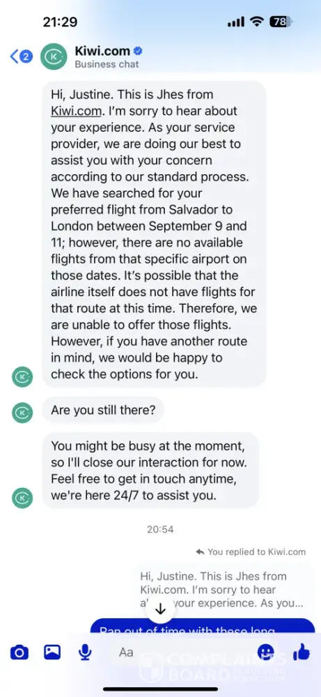 Read full reviewKiwi.com doesn’t care — no support, no help, just excuses