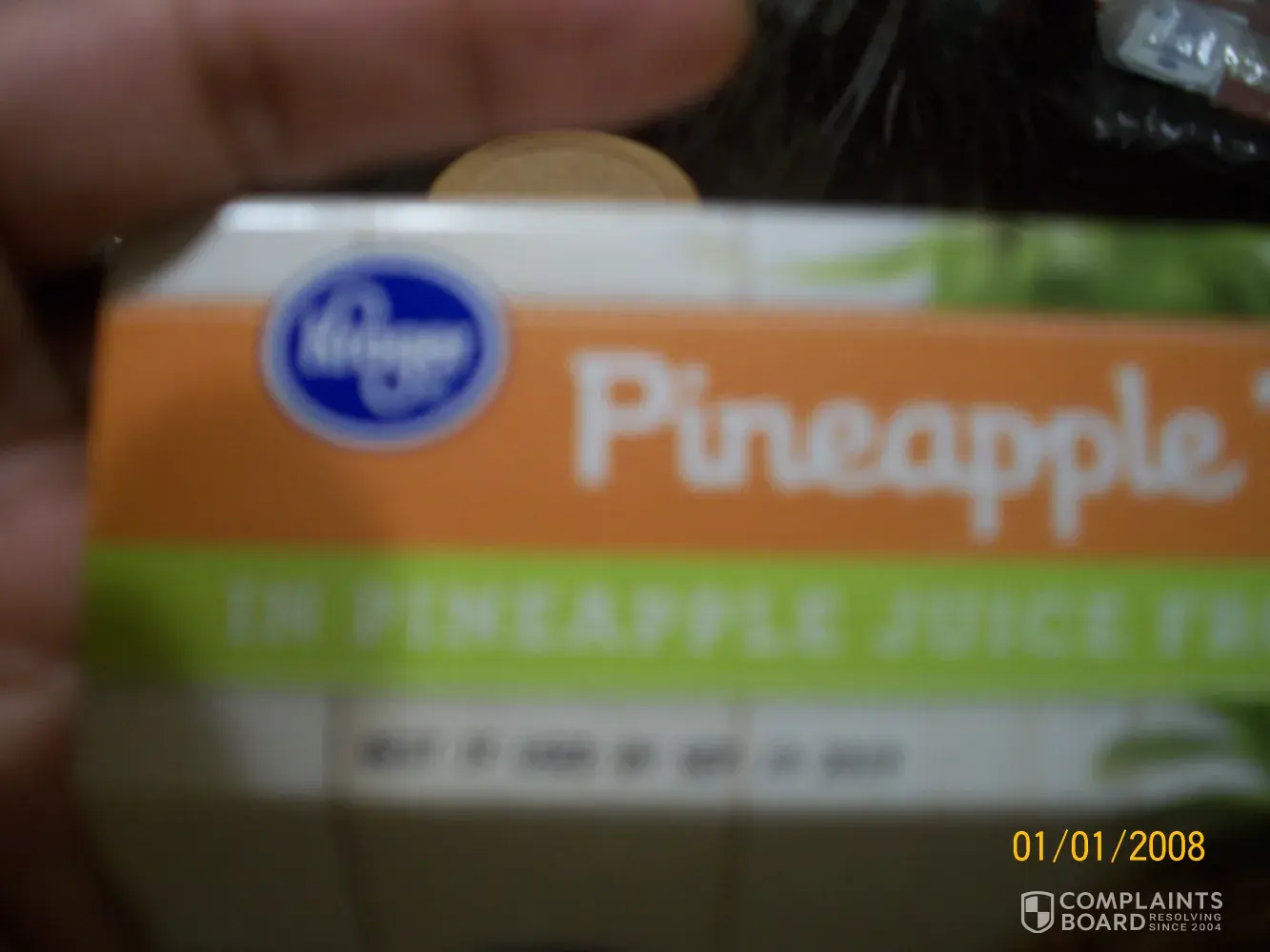 Read full complaintpineapple tidbits/roach leg in container