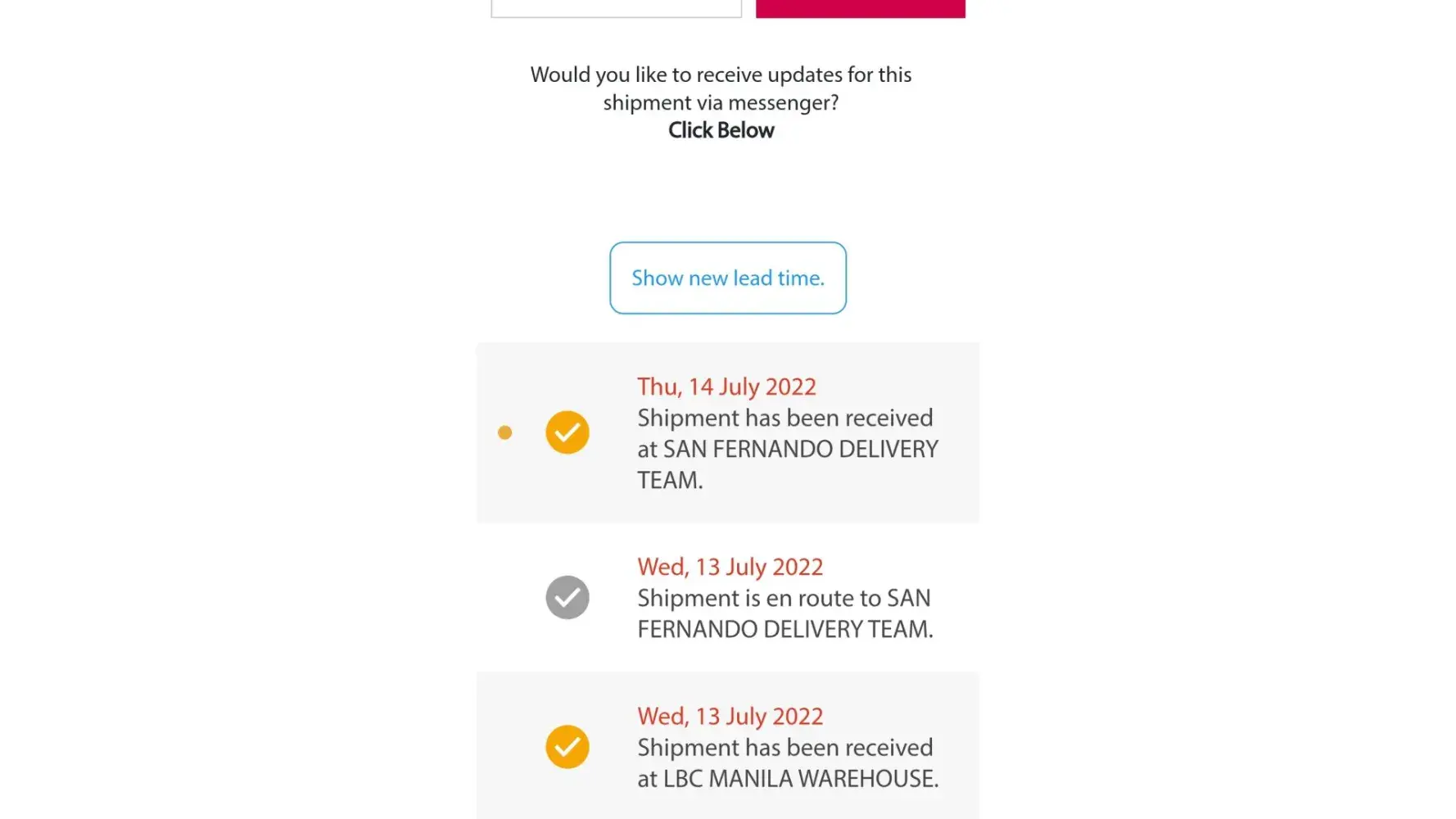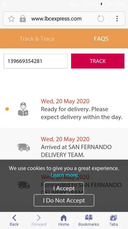 Hello. I would just like to follow up my parcel.. lbc track says it has been on san fernando delivery team since may 20.. may 26 and no update.. "expect delivery within the day".. I need the item..