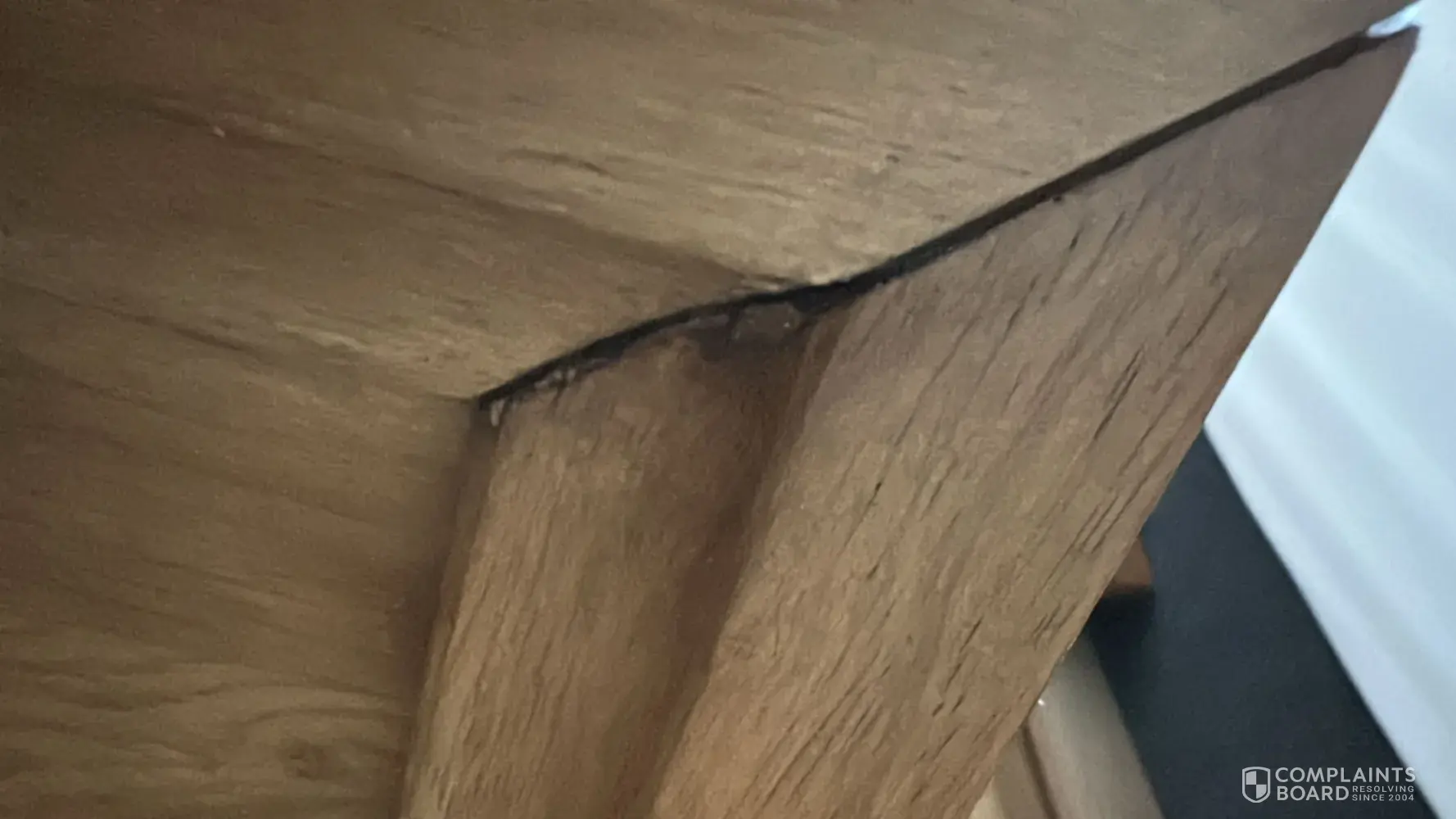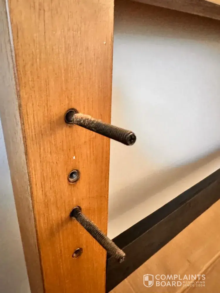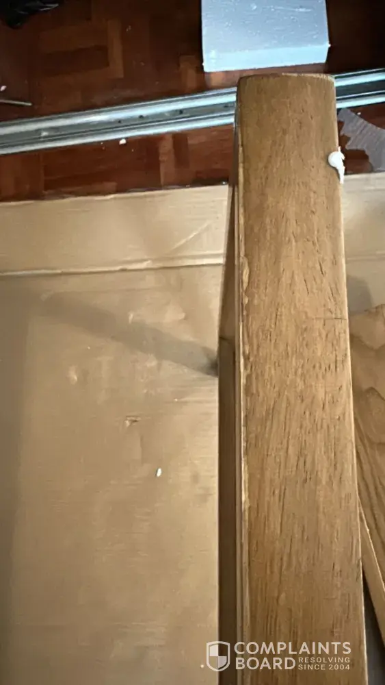 I hope this email finds you well. I recently purchased a wooden oak bed frame from your store. Upon inspection, my friends and l discovered a crack in one of the long panels, a huge amount of wood dust was coming out from the holes. the holes from the long panels appeared to be big. Overall, the bed frame appears to have been used for 5 months or more prior to my purchase, as it was dusty and lacked the fresh wood feel, and the corners show signs of wear and tear with stains indicating trapped dust.