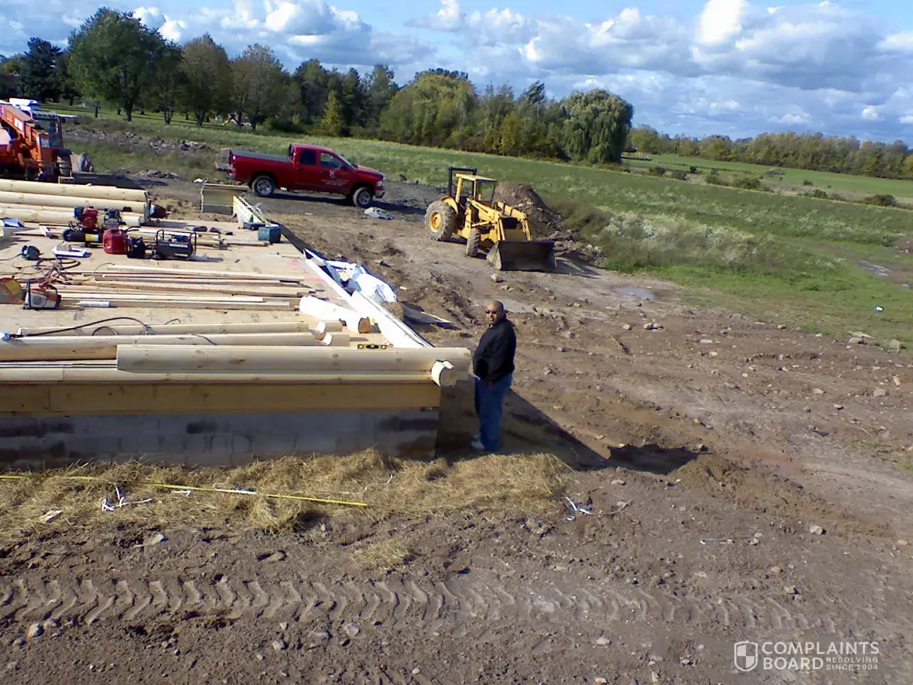 Things were going along ok, the builders built the first floor cap over the basement, all materials were received. They stacked the logs, all items were received. They built the second floor cap over the logs, all materials were received. When my builder started building the roof, we came up 22 rafters short. I spoke with Stacey about it and he claimed his "program" counted wrong. He sent the rafters. They went on to start the exterior walls and the entire back wall, 54 feet, we did not have 2x6's to build the wall. Again, Stacey sent them after he argued with me about them. Stating that his "program" counted them wrong. When my builder started to build the front porch, we had no joists to build the roof, nor did we have the correct posts. 6 Carry posts and a beam for the front porch - he sent pressure treated materials for this. My beautiful white pine cabin and he sent green pressure treated lumber for the porch. NOT what it was supposed to be. We spoke about this and that was the last conversation we had. November 15, 2008. My husband and I had to purchase the rafters for the porch as Stacey did not send them...cost out of our pocket.