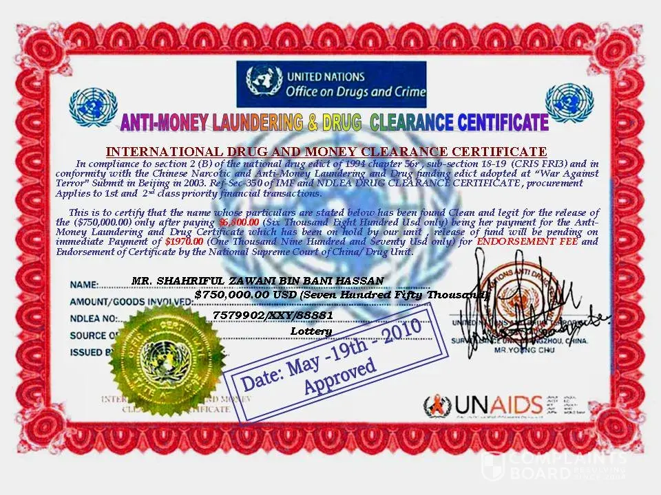 Read full complaintUnited Nations Compensation Unit, In Affiliation With World Bank - Scam!