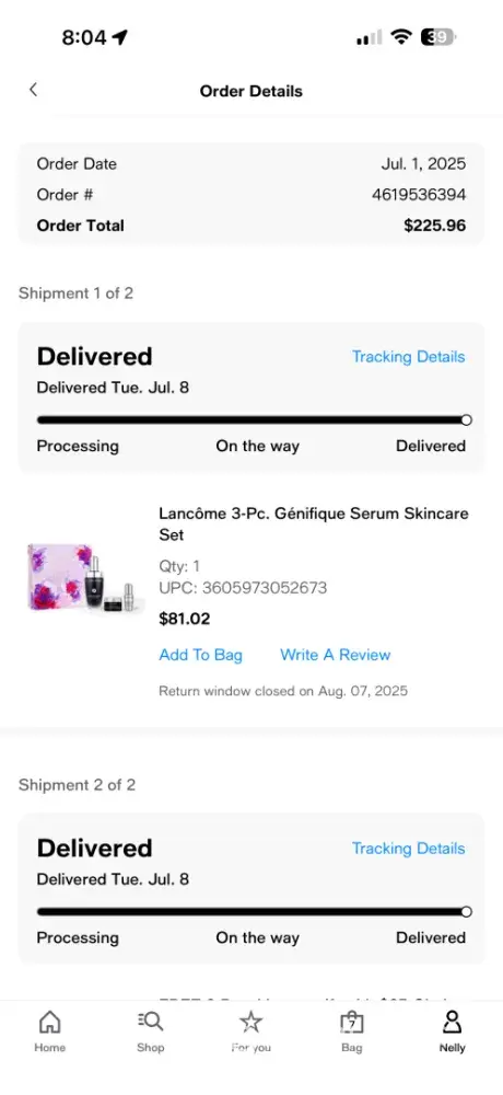 I placed an order in mid-October 2023. I order two luggage sets that were $74.99 each. One set arrived November 2nd. I called to advise them only one set came, and I still want the other set. The cms rep assured me that my reshipment will be on the way. You'll get an email with tracking in 24-48 hrs. I checked my email and it said. Thank you for your...