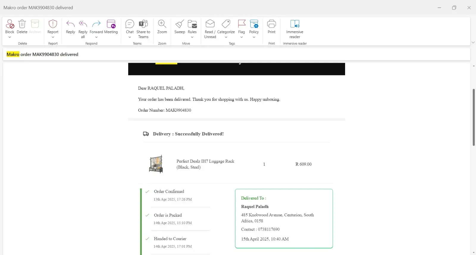 I’m not happy about makro I was expecting my order on Monday the driver called me at night says he can’t deliver, he’s gonna deliver on Tuesday today it’s Thursday,when I call makro I don’t help , when I track my order it say already delivered but I didn’t get my order,I would like to get my refund My order -OD436281806535974100 My contact number [protected]