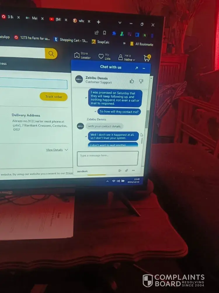 08 December 15:26 again the new call operator was going to send communication to finance complaints and copy me into communication as well as supervisor was going to get back to me...nothing came of that either.