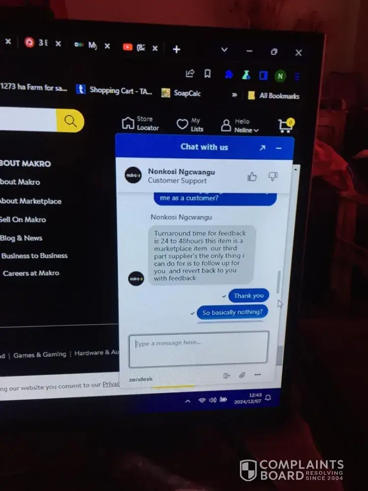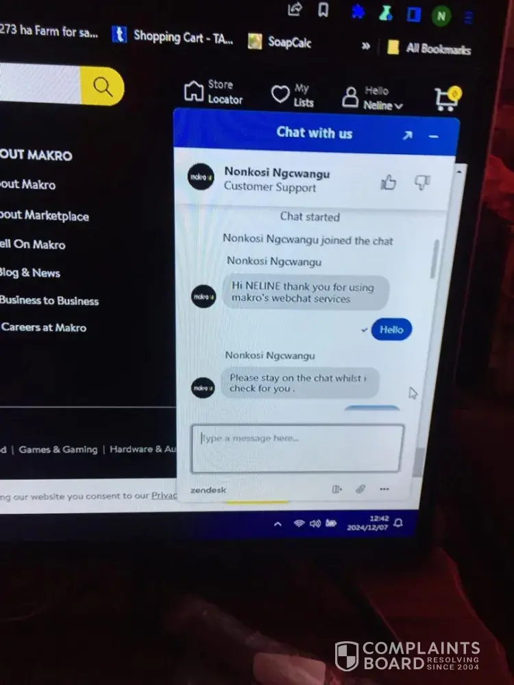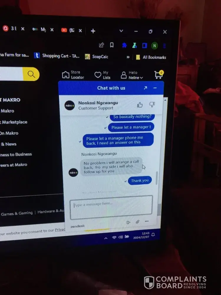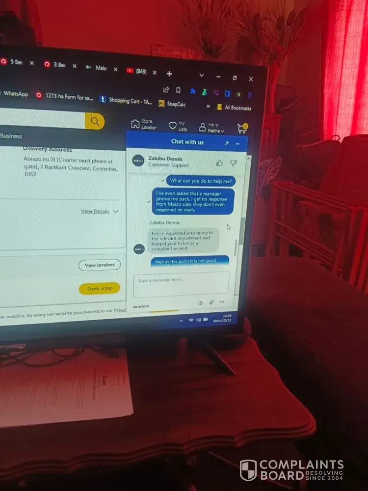 Claimed loss: I've wasted an exorbitant amount of time and money on endless telephone calls attempting to resolve this issue, but dealing with Makro has been a nightmare. Their customer service is non-existent in their day-to-day operations.
