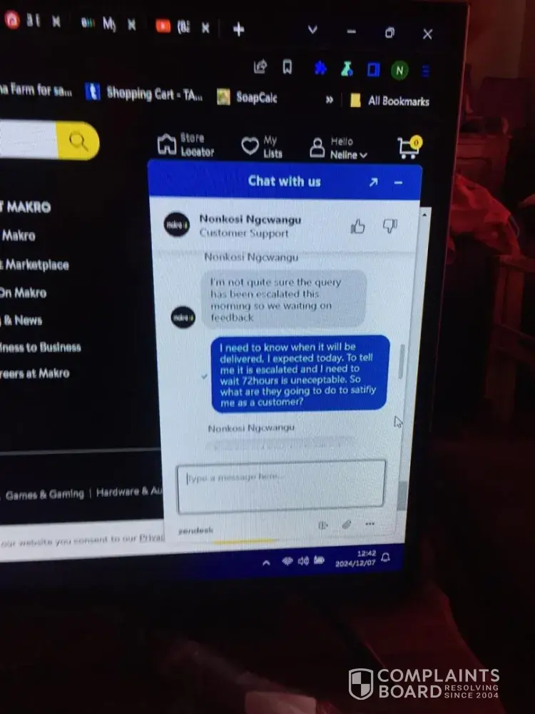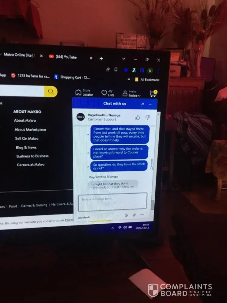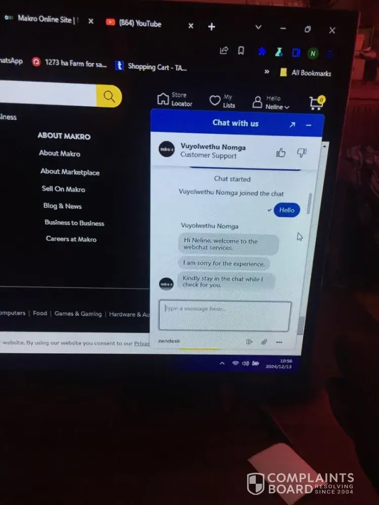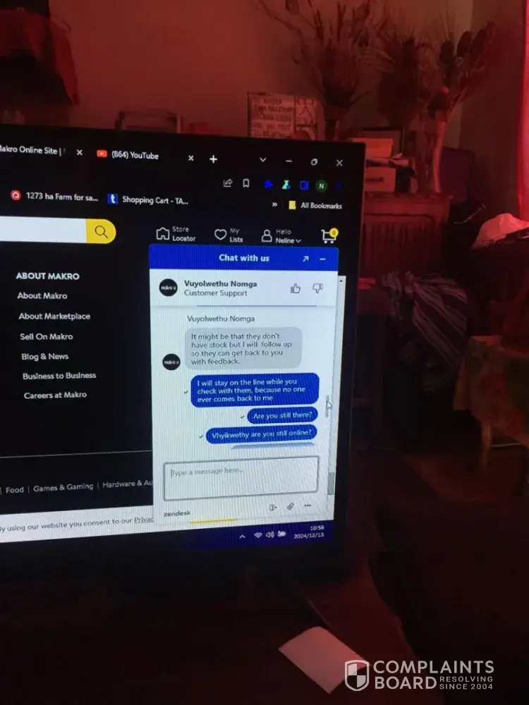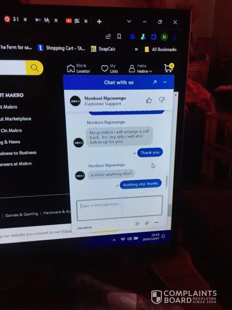Claimed loss: I've wasted an exorbitant amount of time and money on endless telephone calls attempting to resolve this issue, but dealing with Makro has been a nightmare. Their customer service is non-existent in their day-to-day operations.