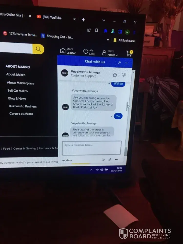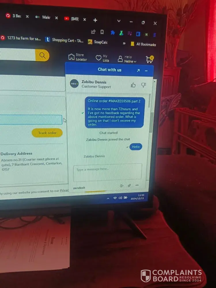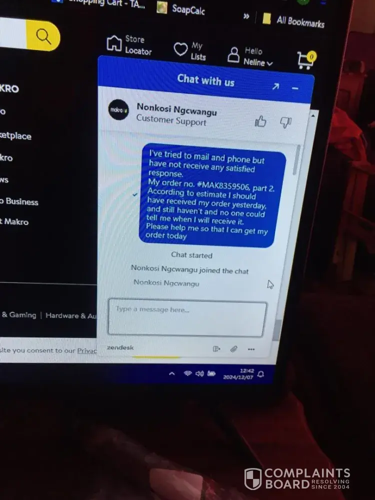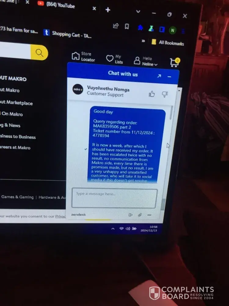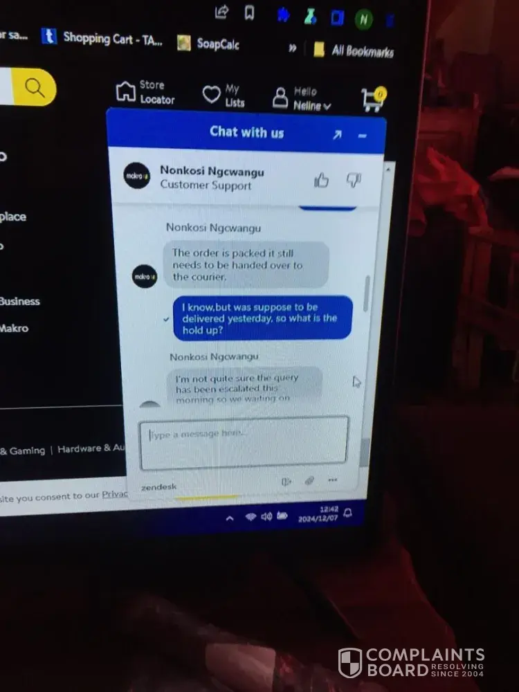I've placed an order with Makro on the 29/11/2024 online which was 3 products.