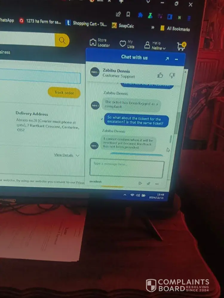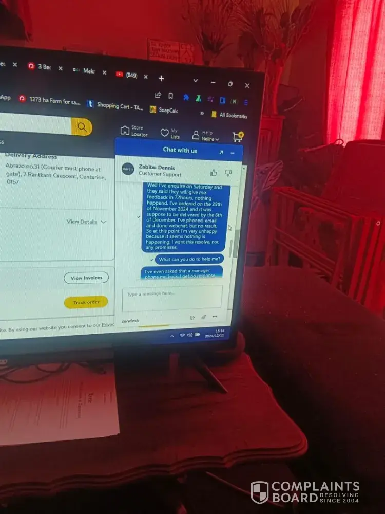 So I've tried webchat on the 7th of December, the 11 of December and 13 December. The 1st 2 times they've said it is escalated and a manager will phone me back. (Nothing happend) Yesterday I've tried again and still nothing happens, I was on for 3hours and all they've said they were trying to get hold of supplier, no feedback no outcome.