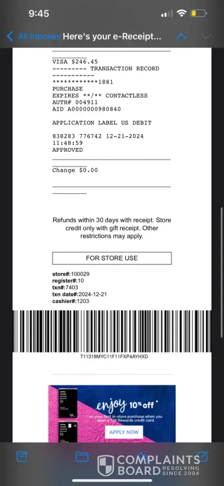 Is this the complaint board for your corporate because it doesn't appear that way? It does' t seem that your care about your customers, products or service?! But... You are a company with stock in the retail service industry, yes? Where though is the integrity and fairness? Your customers left here to squander around like castaways on a very deserted island all alone with each other--- how nice of you! I can tell with this type of caring and non attributes you shall go far but maybe just not that place you all had hoped for. It's as obvious as that look on your complaint board face. So keep up the not so good work and you too shall indeed get that outcome you justly deserve in that place called bankruptcy court or a pile of ashes that used to call Marshalls retail store.