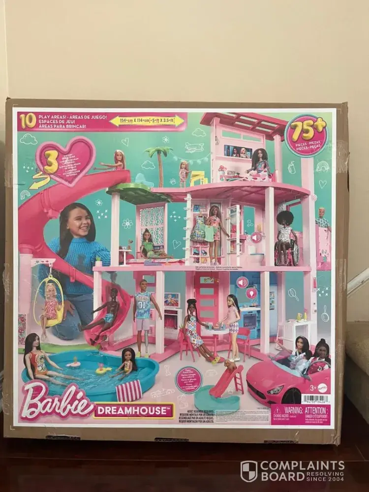 I purchased the Barbie Dreamhouse from Walmart Fairway Road, Kitchener, Ontario for 189 CAD. The packaging prominently shows dolls, a car, and a fully furnished house. Upon opening, none of these items were included. The “dolls not included†notice is extremely small and easy to miss.