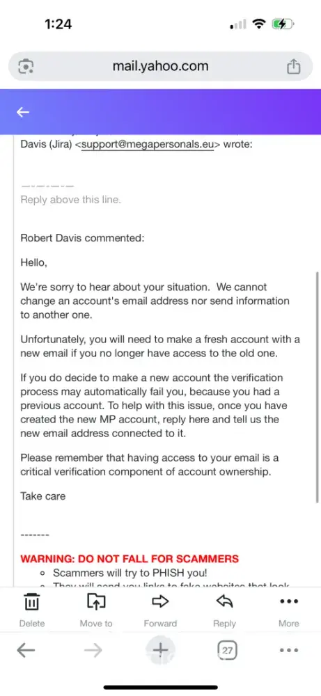 Hello Megapersonals is my favorite my only way to make money. I emailed several times about my account and someone girl who stole my id used my account. She made a new account. I tried making a new account after they said only make no more than one new account. Now everytime i ask or email im getting the same email everytime i have gotten help this never...