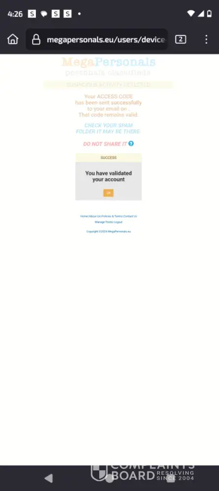 Read full complaintYes, MegaPersonals.com is a legitimate platform designed to facilitate personal connections.
