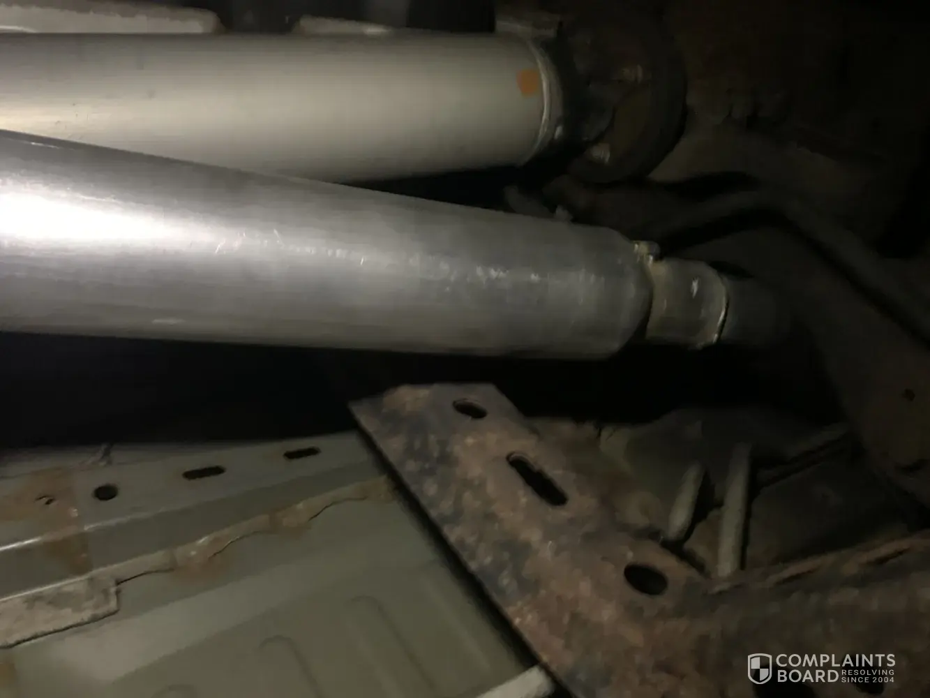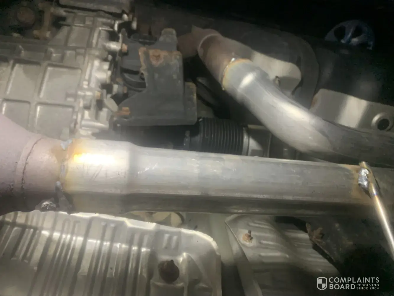 Once the car was taken to Ford, we learned that several brackets were not reinstalled on the vehicle after the installation of the catalytic converter and turbo. Basic frame parts were missing as well as the actual bracket to connect the catalytic converter to the turbo. This was likely due to the service installation being a complicated process requiring removal of the front axles, etc. in order to get the catalytic converter and turbo installed.