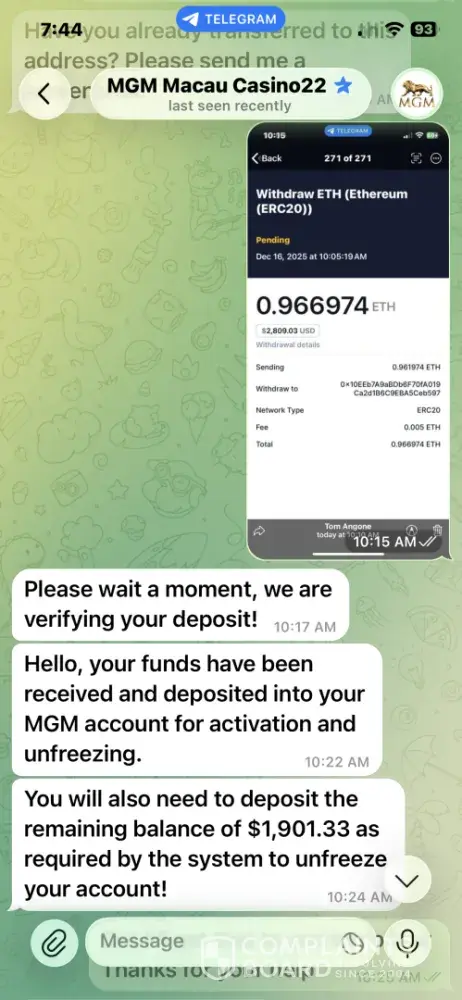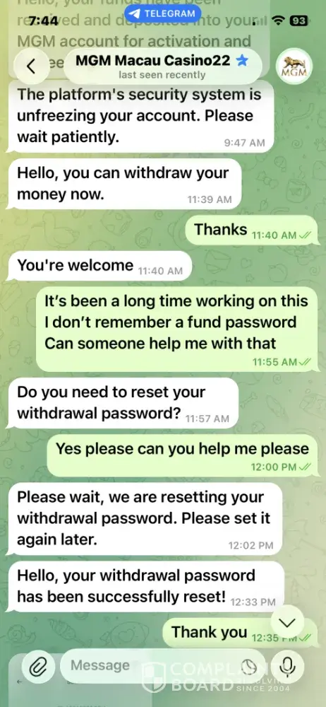I have 247,000 in my MGM Macau acct I asked to have it transferred to me followed MGM instructions and never received my funds the attached screen shots show all the details of the interactions with mgm Macau those details should be sufficient for MGM Macau to understand and respond to the issue at hand I wish to recover the 247,000 in my account soon