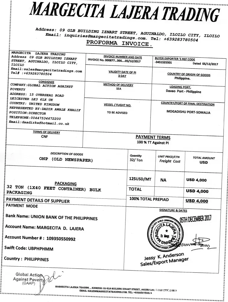 We have agreed and I margecita lajera trading company in philipines to deal paper container 20 feet at $ 4, 680