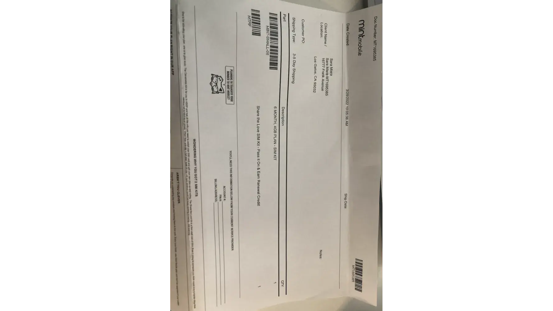 Mint Mobile Problems receiving sim cards