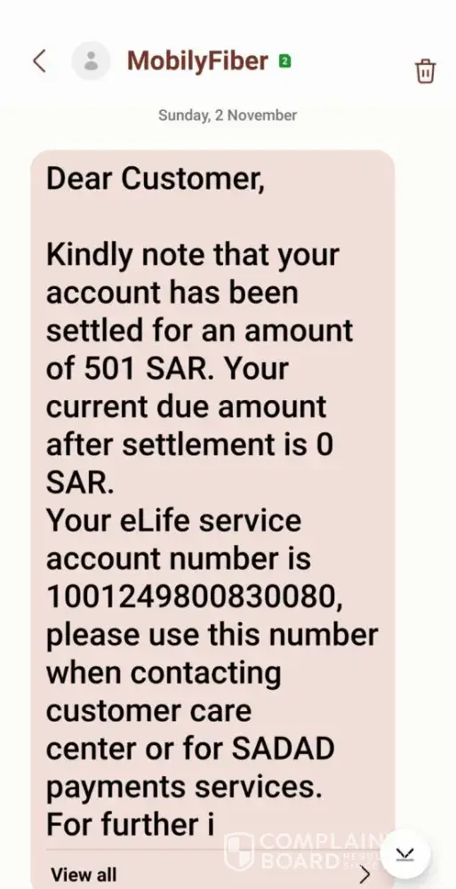 My name is Mahammad Rafeek Abdulla. I have been using a Mobily WiFi connection for the past two years under Account No. 1001249800830080. Approximately two months ago, I officially requested the cancellation of this service through Mobily customer care and the Mobily office. As instructed, I paid an amount of SAR 501, after which my outstanding balance wa...