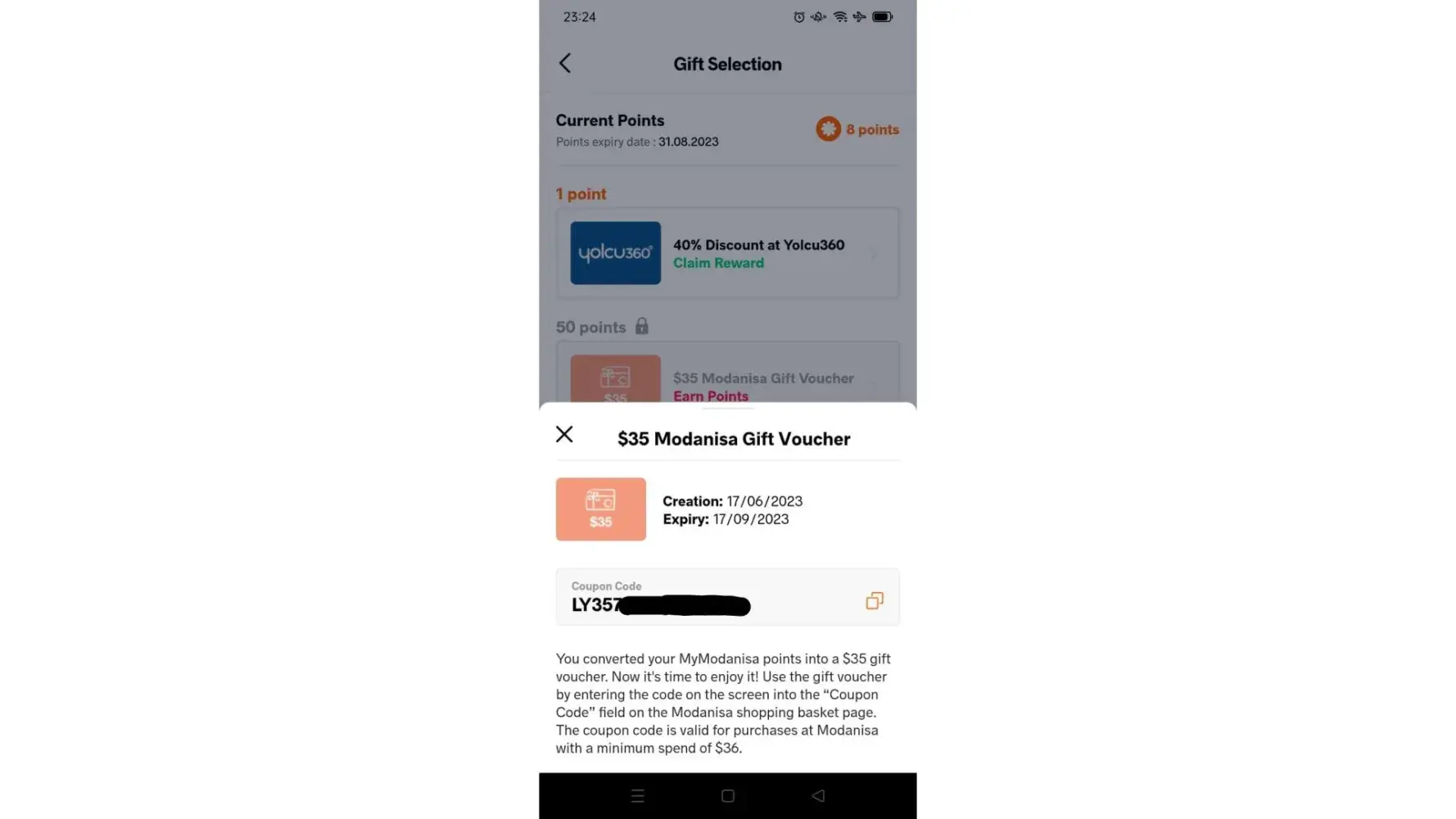 Desired outcome: I would like modanisa to make the three vouchers as they were before, to match the original vouchers that I used my points for.