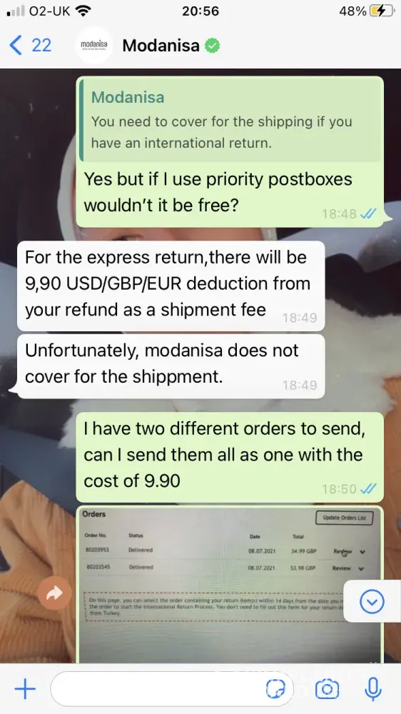 I used Modanisa a couple of times was good, however, last month, I Cancel the order and ask for a Refund usually they took short time however now, it took more than 1 month and a half and I called them many times and every time they said 10 working days. I am really upset with the refund process and no response