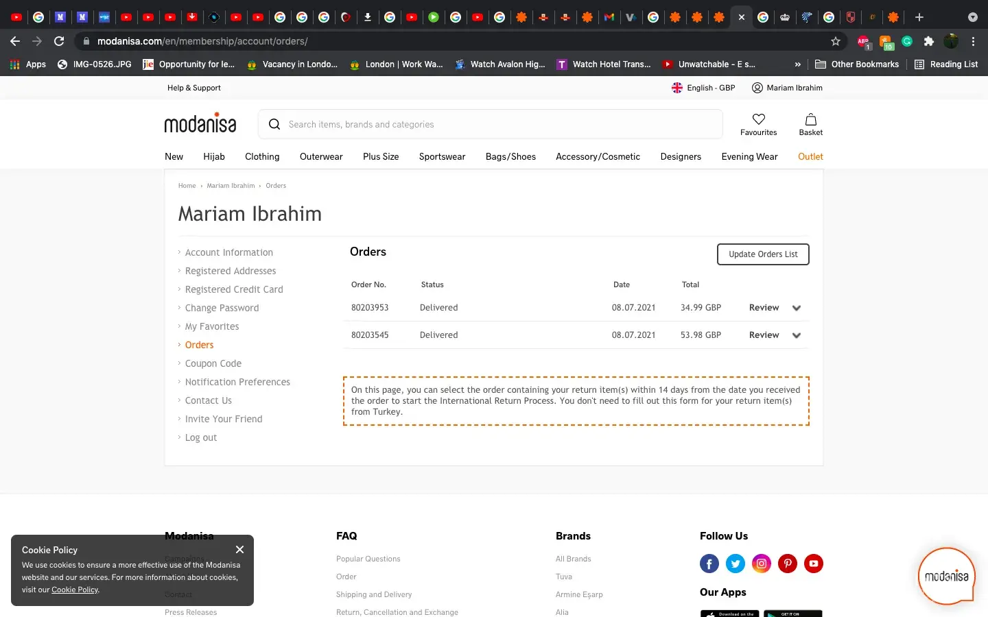 On the 1st June, I made an order through the Modanisa app. while I made the payment for the order, the app gave me an error message and didn't go through. So, I started over again, spent 4 days collecting my items again then I made the second order. After a while I received the first order which I wasn't aware of because the app didn't confirm the payment. So, I emailed Modanisa CS to cancel the 2nd order but they didn't respond.
