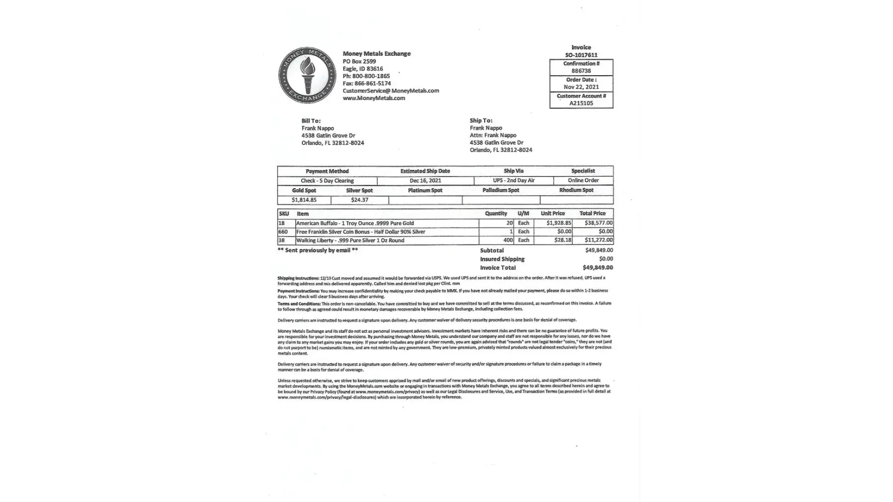 Over 6 months ago I ordered some silver from Money Metals Exchange