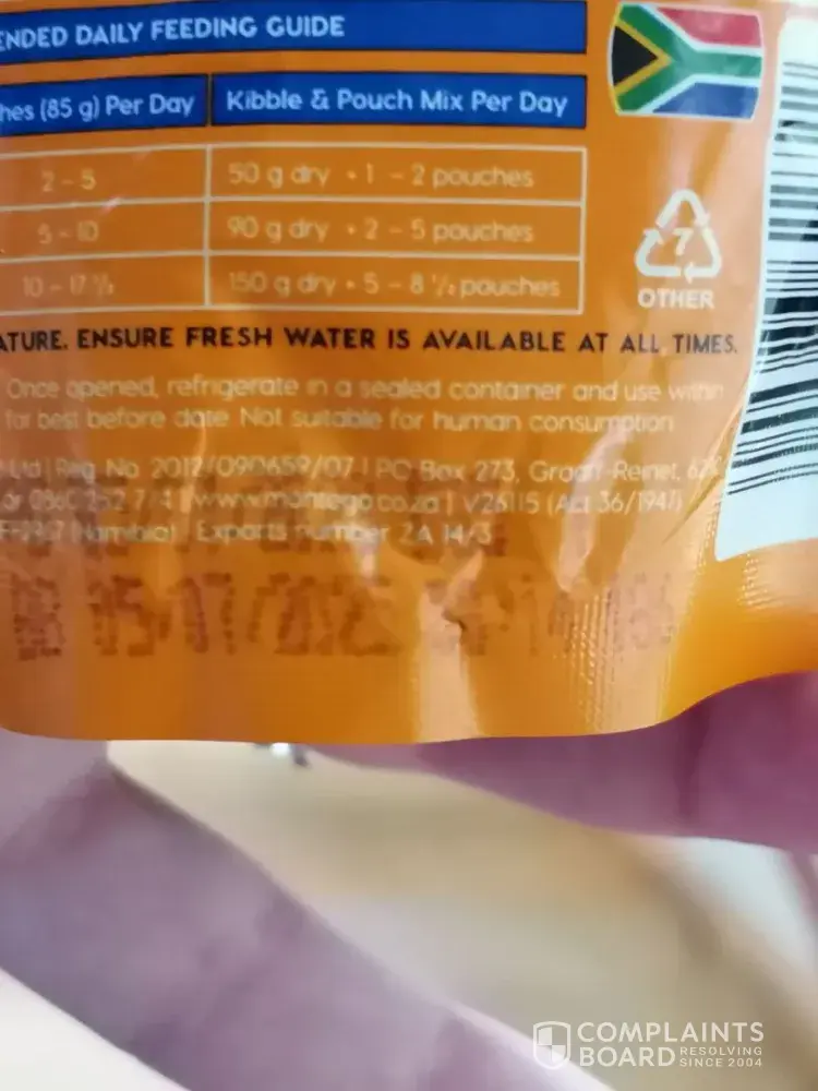 I purchased a box of Montego wet sachets, and the contents was putrid, runny, and had an extremely bad odour. This is not the first time this has happened. Although I didn't complain the first few times, although now, we are away from home and there are no shops in the vicinity, this leaves us in a predicament as to what to feed the poor dog, I'm very disappointed in experiencing this Again, does the food not have some kind of quality control before being packaged.