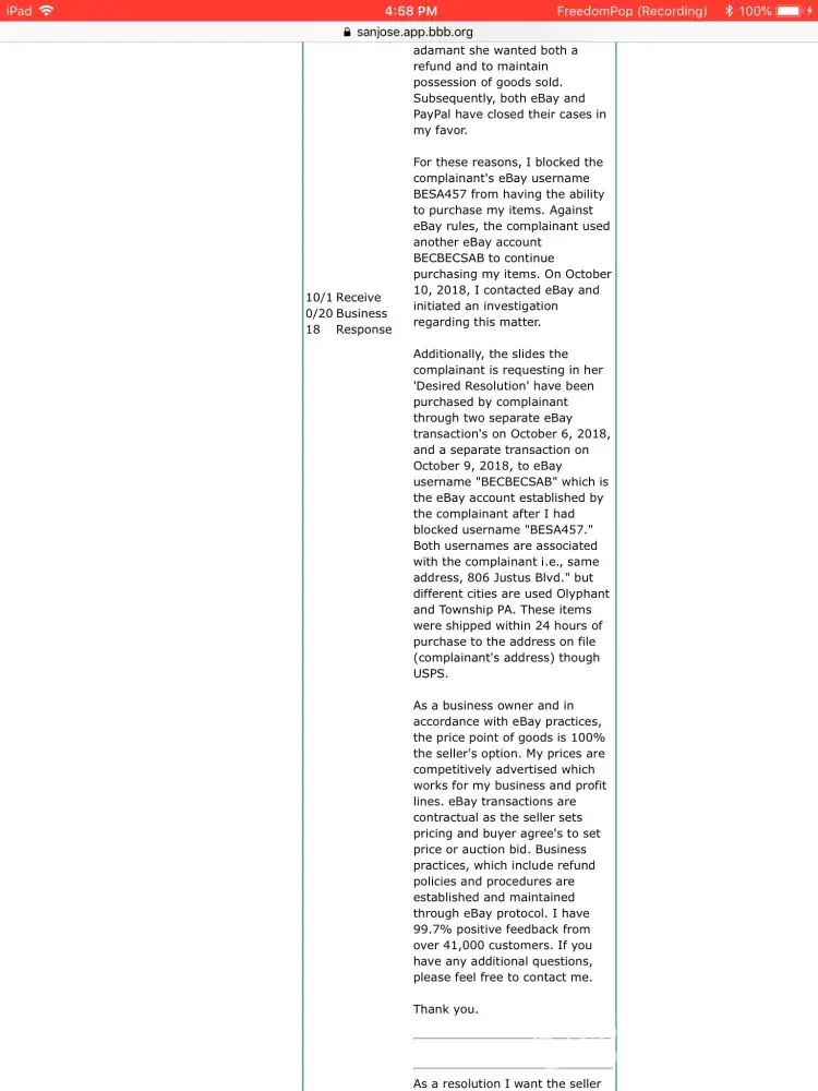 The seller also lied about me to the bbb screencap below