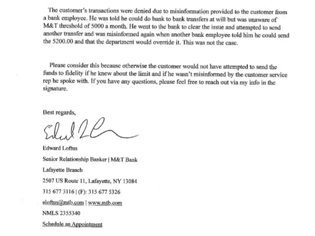 Really? This was my first and most likely my last loan or any business with M&T. Plus, I'll make sure that I let the various social media platforms that I participate in the problem that I'm having.