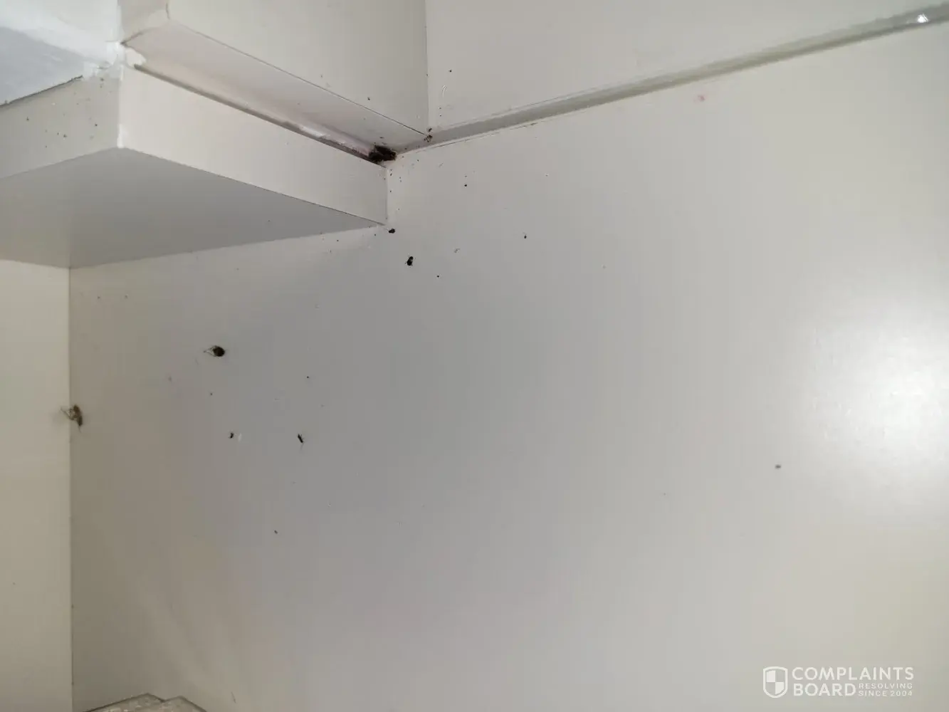 When it's rain the water that collects on roof comes into my bedroom through the walls and under the tiles. Floor tiles are cracked and has holes. Window pain has a hole, where small creatures (bugs) seep out from outside. Paint peeling and bubbling from access water build up. This has been going on for 3 years and main office knows the situation.