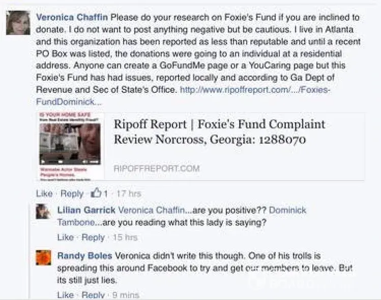 Casey Holt & Steve Ereth allowed their dog Foxie to be use to set up one of the biggest dog scam groups on face book called Foxies Fund, These two men that are married to each other has enjoyed driving cross fire sport cars & taking Hawaii vacations on money collected off bogus sick dog scams created by Art Smith ( Beverly Murphy ) & Dominick Tambone which...