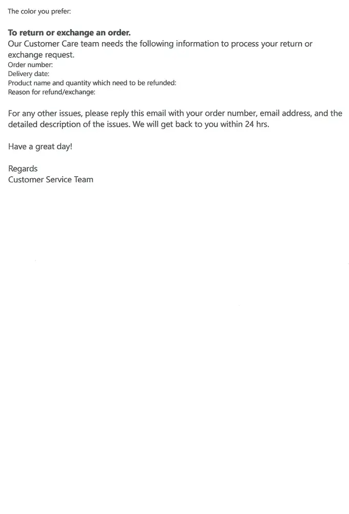 I have been trying to process my return via the Noracora website, as the website directs. I have provided them with the order number, delivery date, item number, amount paid, and reason for return. I continue to recieve the same email in return from NoraCora. It tell me that I need to provide the information which I just sent. So frustrating! They have a 15 day return window which now is almost over. I believe this company is a scam!