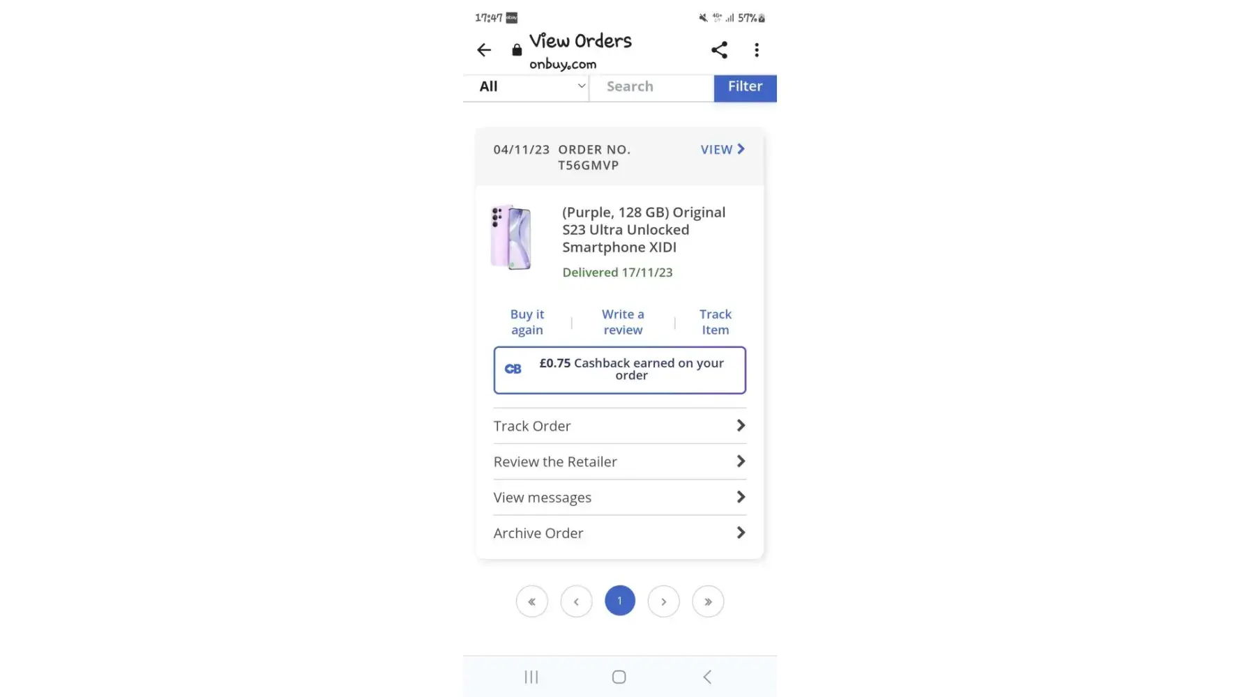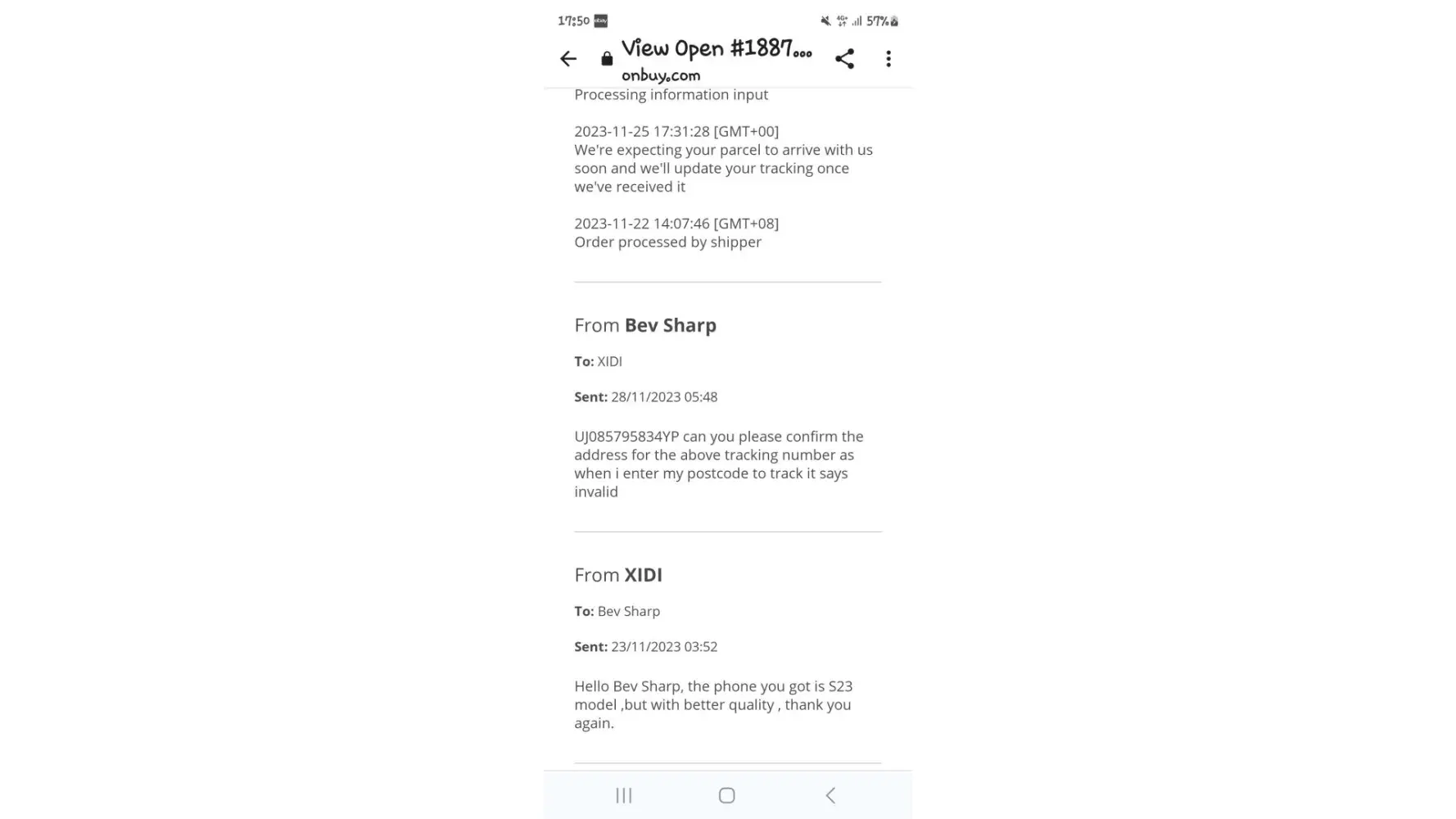 I ordered a mobile phone that arrived on 17th November 2023 under evri tracking number H03JZA0035622101.