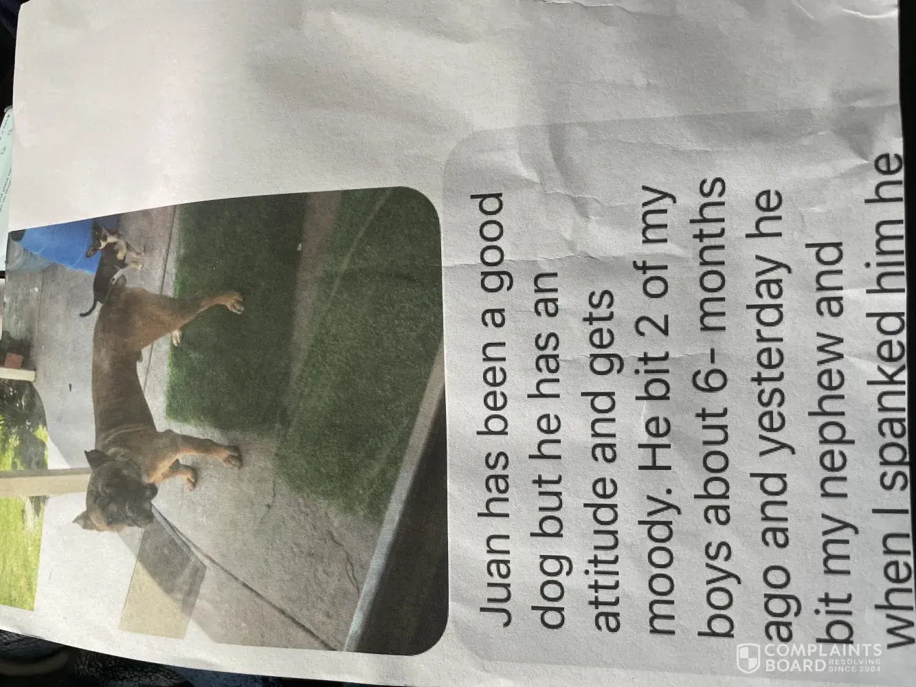 I know there are more of that breeders dogs out there. I wish more people would report her. It’s very sad. She’s selling these dogs to families. Not only are he families at risk of serious injury, like our family, we had to part with our pet, that we loved, it’s very very sad. Your dog looks very closely to my dog. I’m trying to see if more can be done.