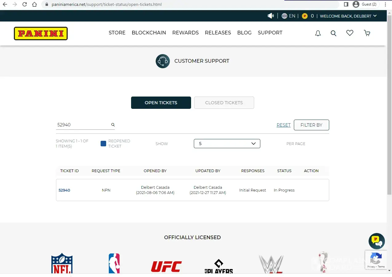 For over a year (since August 6, 2021) I've been waiting to receive a trading card from PaniniAmerica.net and I've yet to receive it or given any idea when I might get it from the company despite numerous requests. My name is Delbert Casada and my email is [protected]@yahoo.com. Please see the attached file for further information. Their "redemptions, damages or...