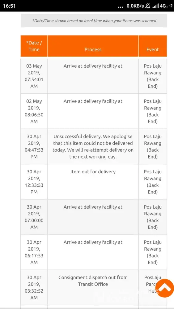 Pos Laju Rawang - Back end/unsuccessful delivery